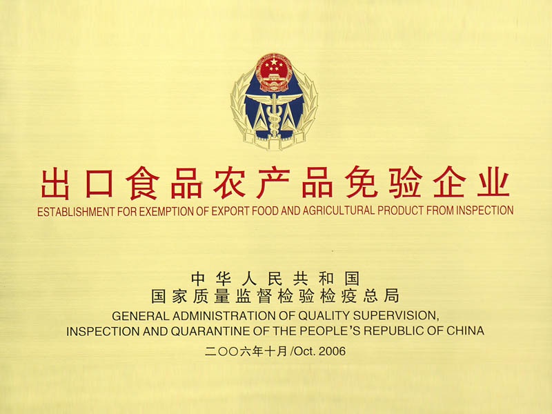 出口食品農(nóng)產(chǎn)品免驗企業(yè)